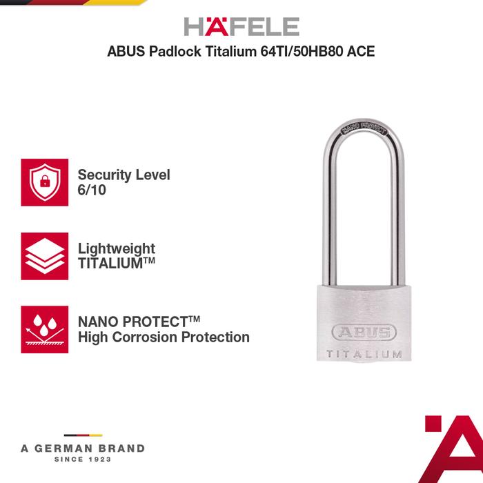 HAFELE ABUS Gembok Pagar 64TI/50mm HB80 Serbaguna Titalium Anti Karat - Padlock Titalium Silver
