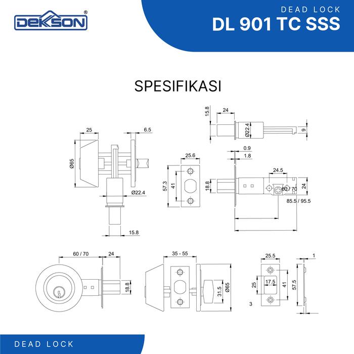 DEKKSON Deadlock Kunci Bulat DC TC 901 Satin Stainless Steel