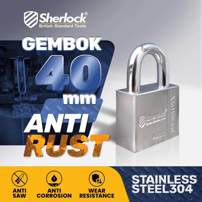SHERLOCK Gembok Anti Rust 40mm Pendek Stainless Steel 304 Anti Karat Anti Congkel Anti Bor Gembok