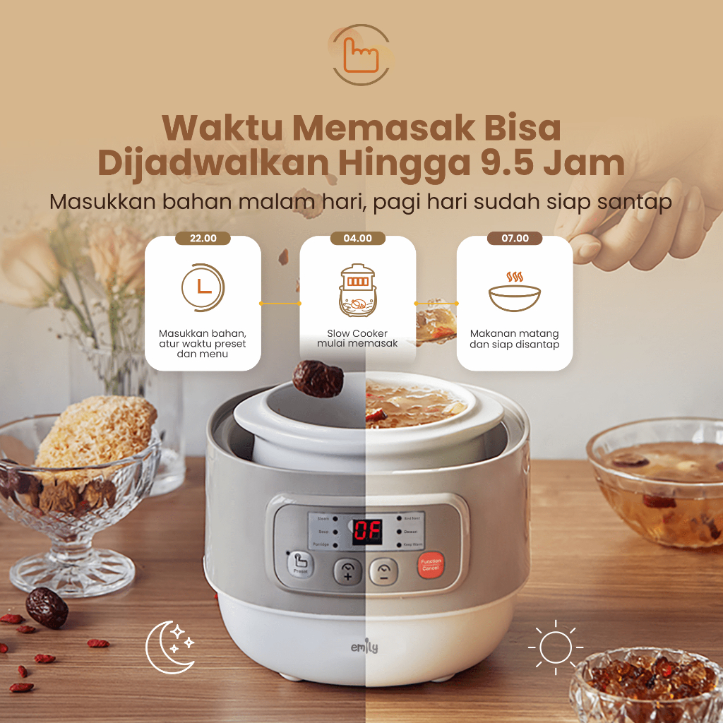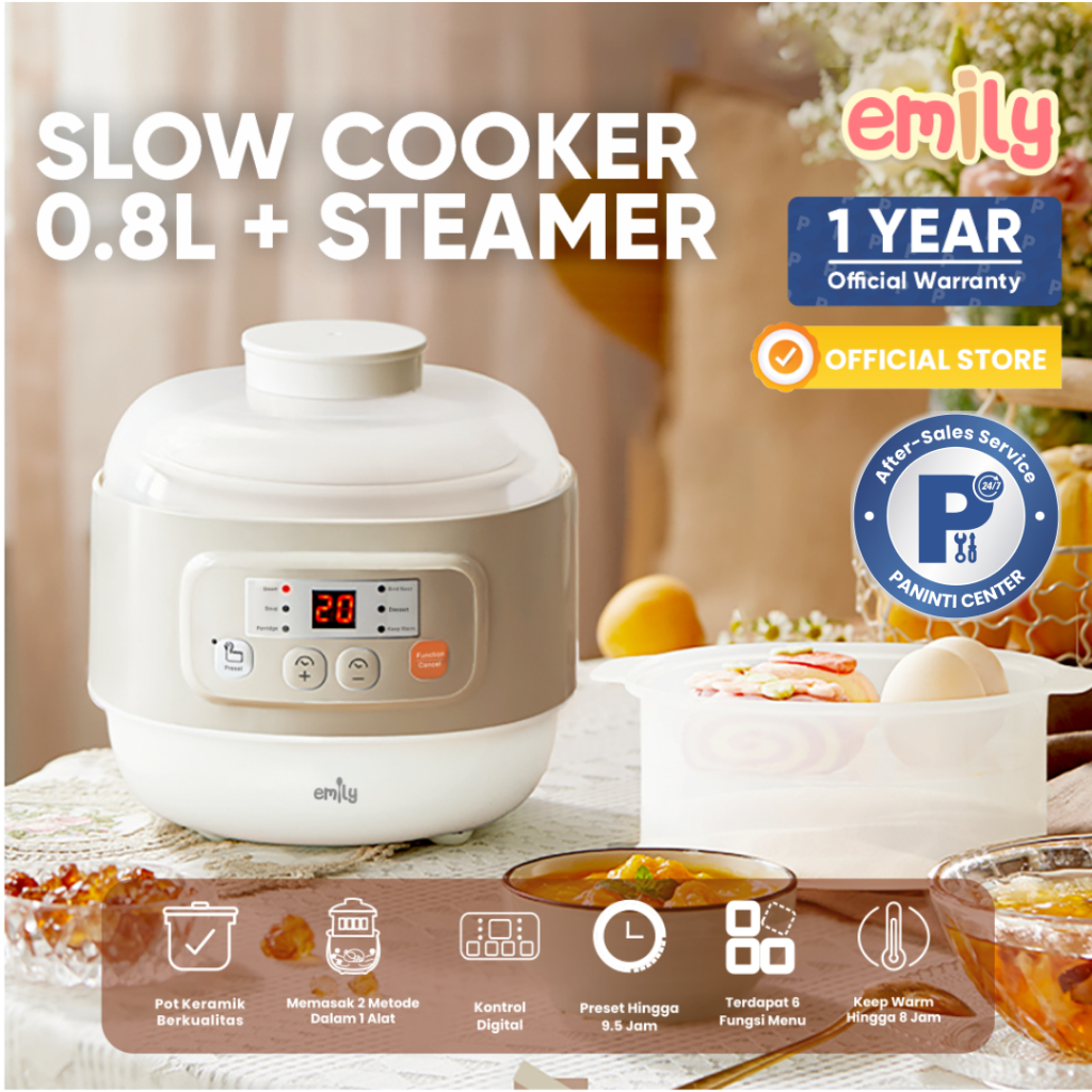 [Star] EMILY Slow Cooker + Steamer 0.8L Ceramic | Panci Keramik | Baby & Family Food Maker | MPASI Cooker