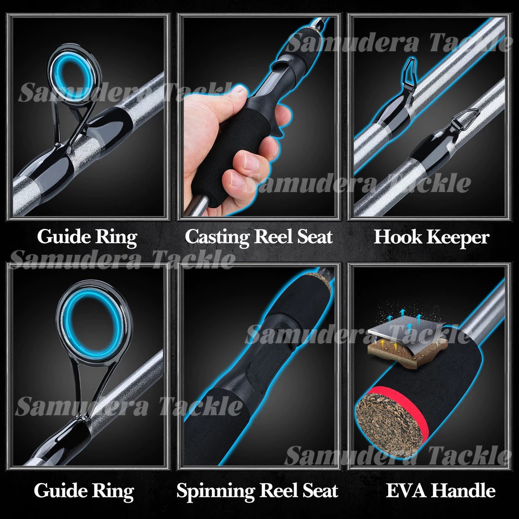 Joran pancing 2 bagian spinning/casting 1.65m/1.8m/2.1m M/ML joran casting Carbon Fiber Max Drag 20kg Spinning Fishing R