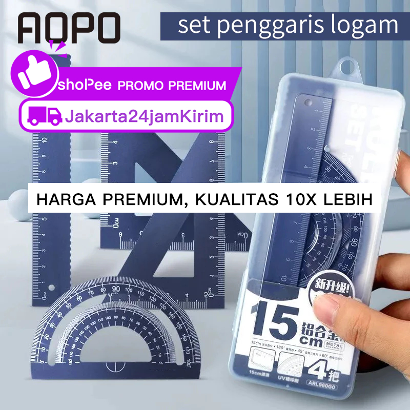 PENGGARIS ALUMUNIUM 1 SET 4 MODEL / PENGARIS/ RULER ALUMUNIUM GEOMETRY DRAWING - THIMPLE