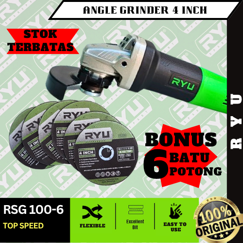 Mesin Grenda Ryu Angle Grinder Tipe RSG100-3 RSG100-6 Uk' 4 Inch Original Terbaru / Gerinda Listrik Grenda Tangan Grend