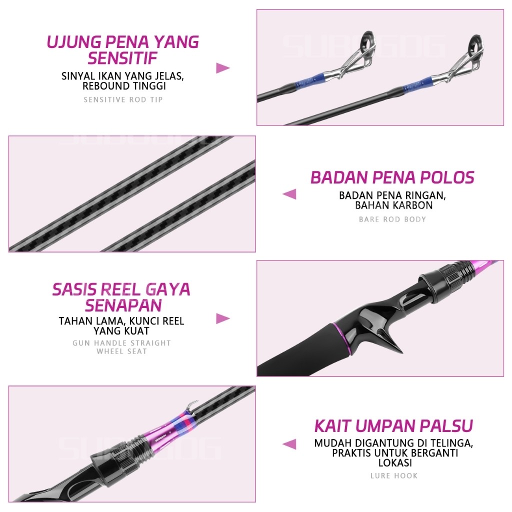 【Hadiah】SUBOGDG - Joran Pancing Spinning/Baitcast Carbon - 4 Size 1.65m/1.8m/2.1m/2.4m - Power M - All Round Fishing - W