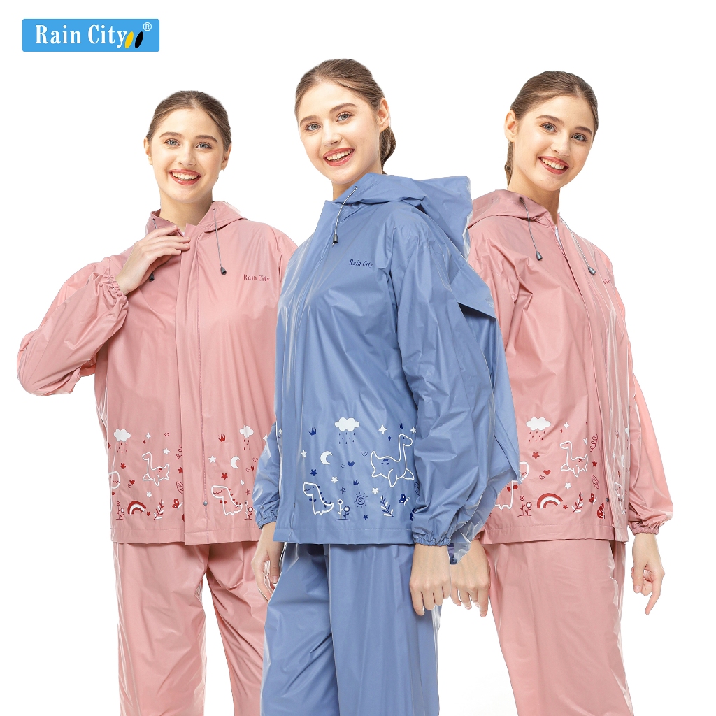 SUMBER 13 STORE RAIN CITY Jas Hujan Setelan Wanita Ransel Pink Pastel Lucu Dino Doodle 70047 - Rain City