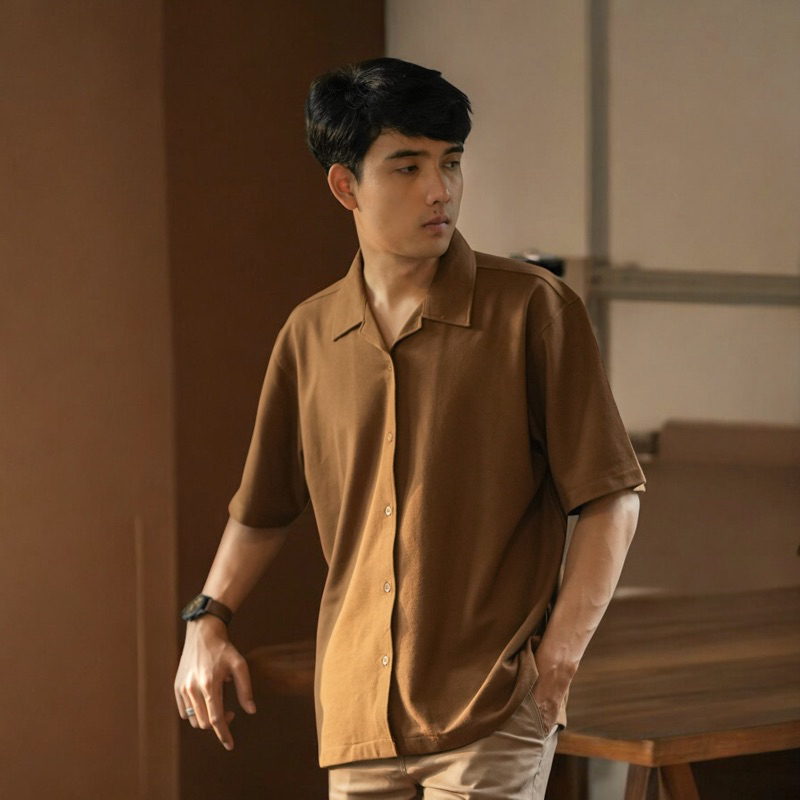 GENTA 88 STORE GOODETHICS - Kemeja Kerah Terbuka Lengan Pendek | Bowling Oversized Pique Shirt