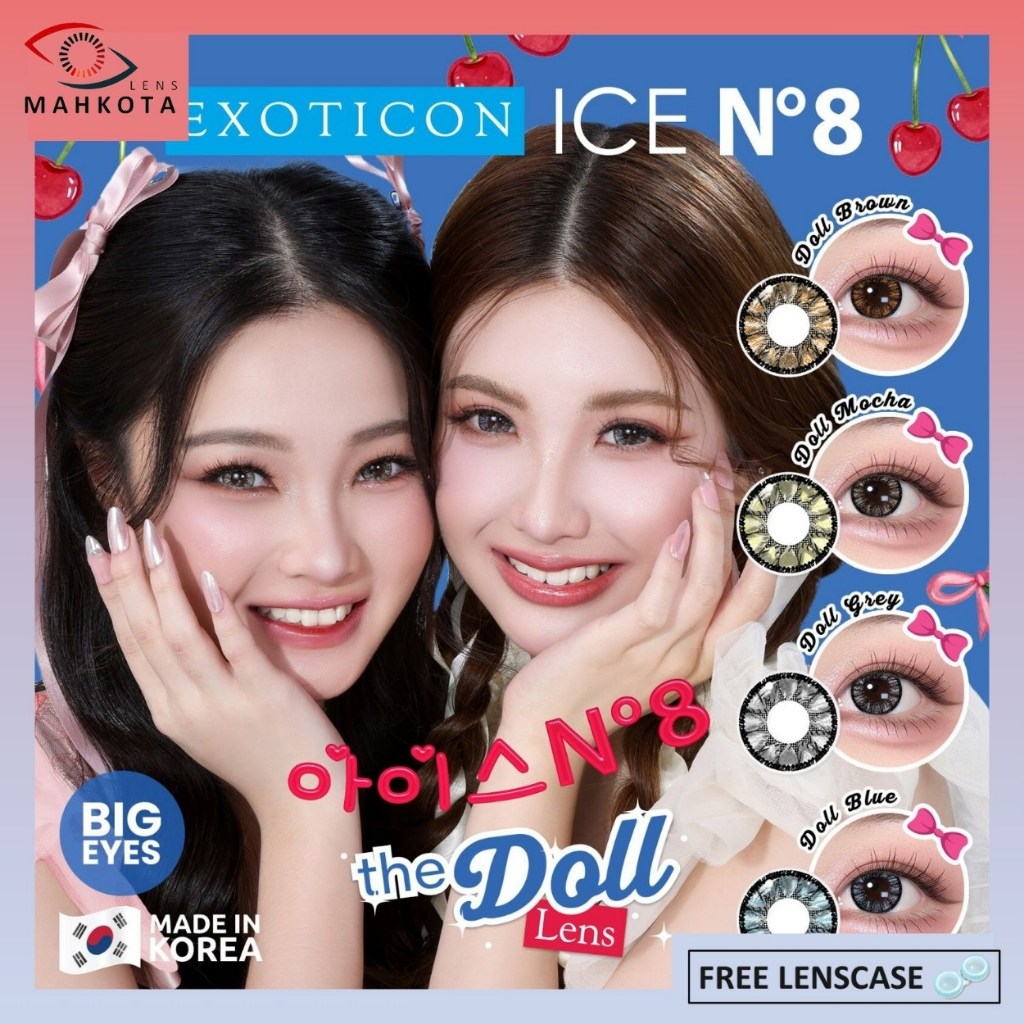 SOFTLENS ICE N8 THE DOLL NORMAL & MINUS (-0.50 s/d -6.00) BY EXOTICON BIG EYES 16MM MADE IN KOREA