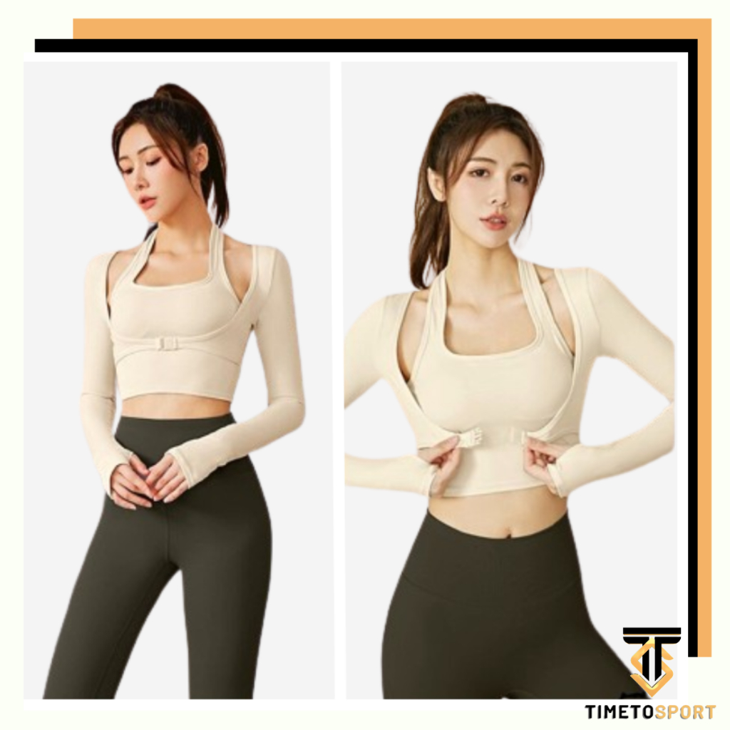 ALADIN_STORE TIMETOSPORT Baju Sportbra Crop Top Wanita Olahraga Yoga Gym Fitness Aerobik Zumba Lengan Import 1142