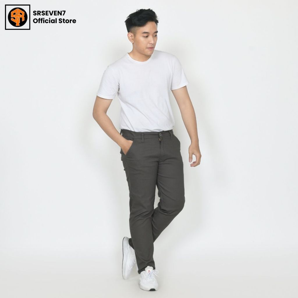 WEEZER ONLINE SRSEVEN7 Celana Chinos Panjang Pria Slimfit Carbon Stretch Big Size Jumbo