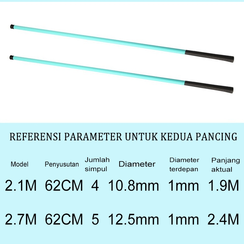 METALIVE 2.1/2.7M Joran Tegek Kualitas Tinggi Super Ringan Serat Kaca Keras Tangan Pancing Portabel Teleskopik
