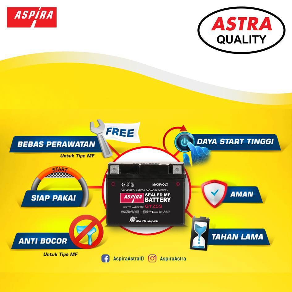 HAT STORE Aki ASPIRA Astra GTZ5S MF(3.5 Ah)-Aki Motor Vario,Beat,Mio,Scoopy,Vixion,Xride,dll
