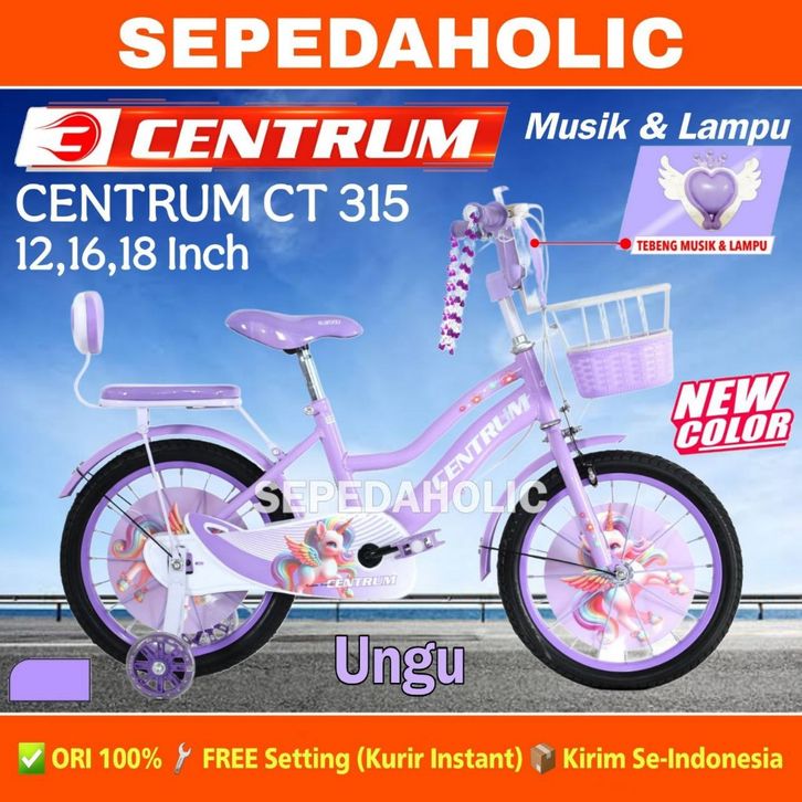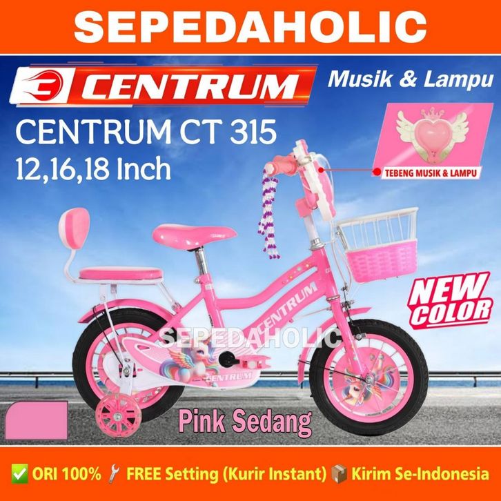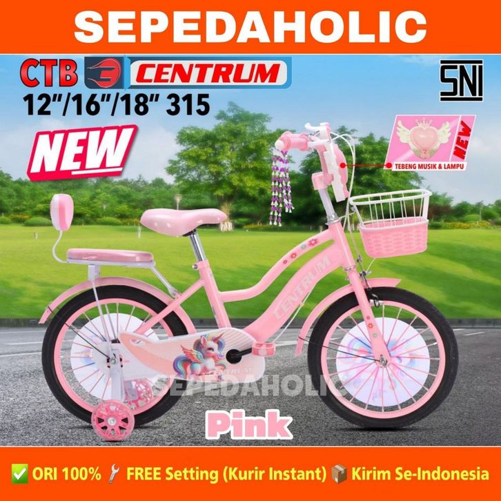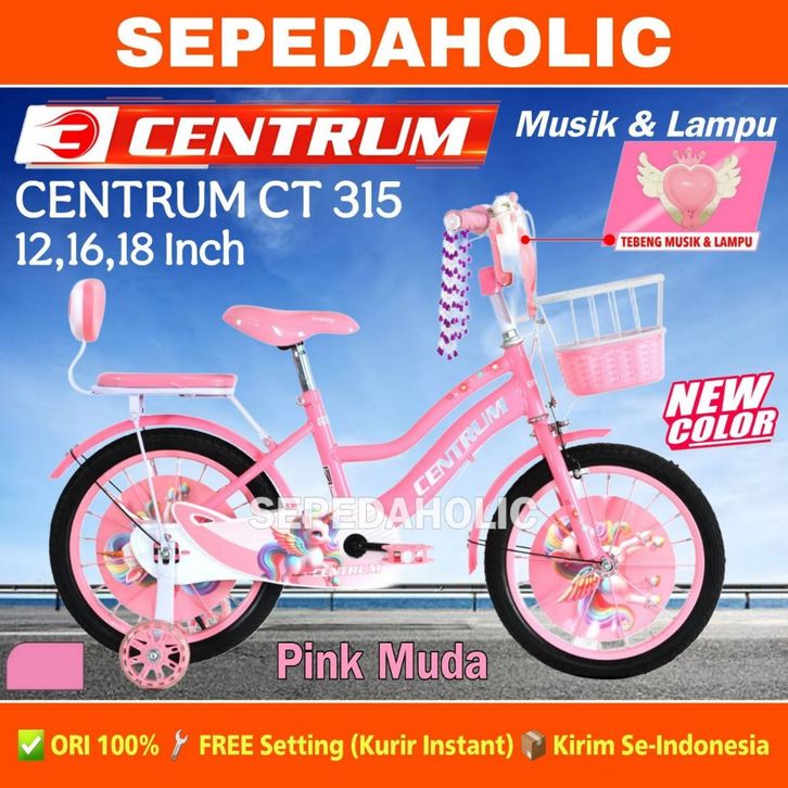 Sepeda Anak Perempuan CENTRUM CT 315 / VELION 81 Musik Ukuran 12 16 18 Inch Keranjang Usia 2-8 Tahun