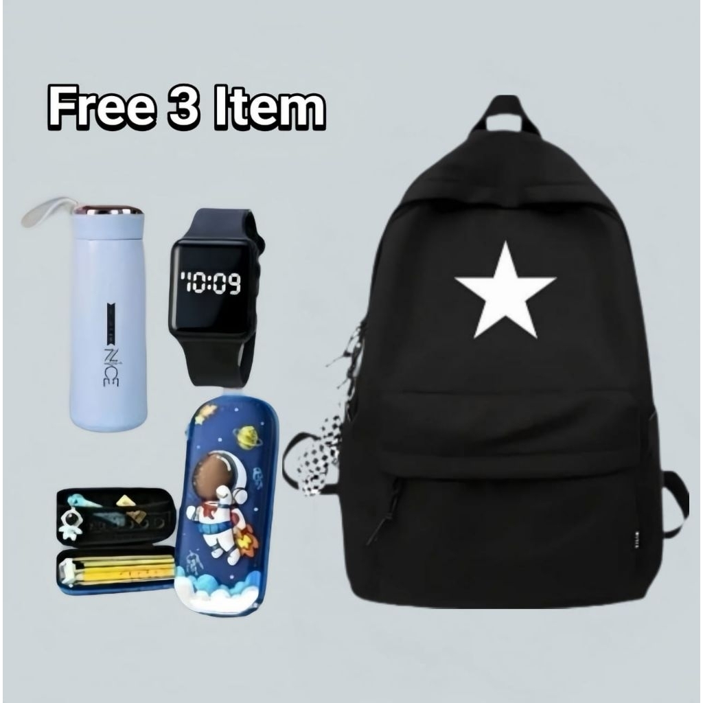 TAS RANSEL ANAK SEKOLAH SD SMP PRIA WANITA BACKPACK SIMPEL HITAM