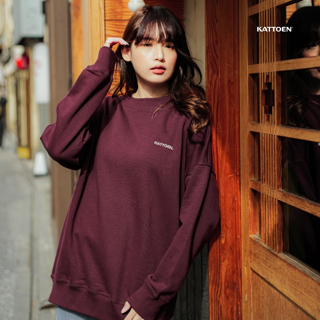 GENTA 88 STORE Kattoen Crewneck Sweater (Oversize) - Burgundy 290 Gsm