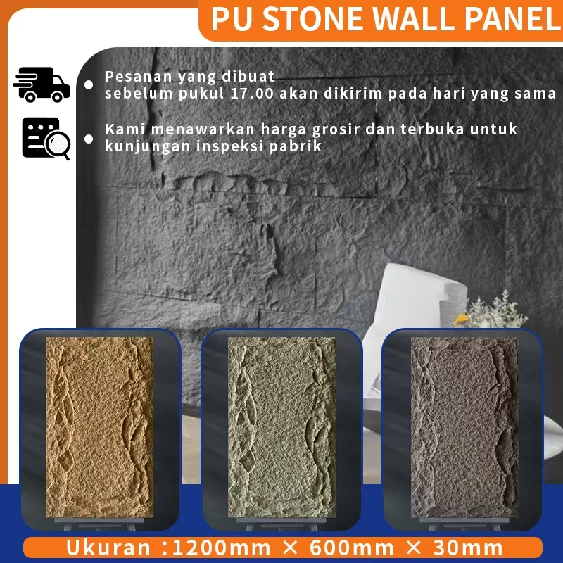 PU Stone Panel Batu Alam 3D Dinding Estetik 60x120cm Desain tekstur natural untuk Interior(60x120CMx3cm)