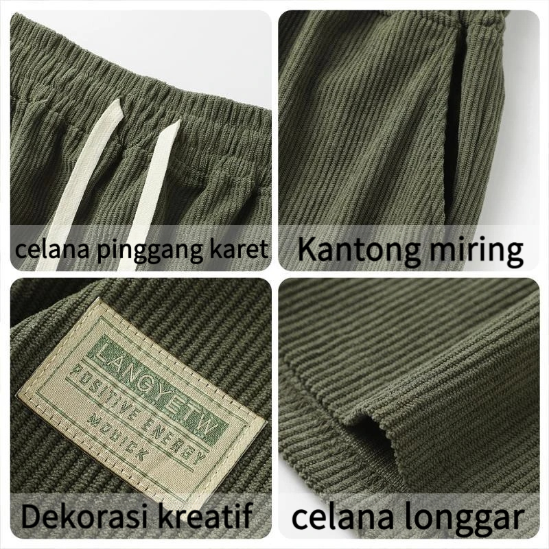 WEEZER ONLINE Tamp-X Celana Pendek Pria Casual Motif Distro Corduroy Santai Baggy Korean Style Pinggang Karet
