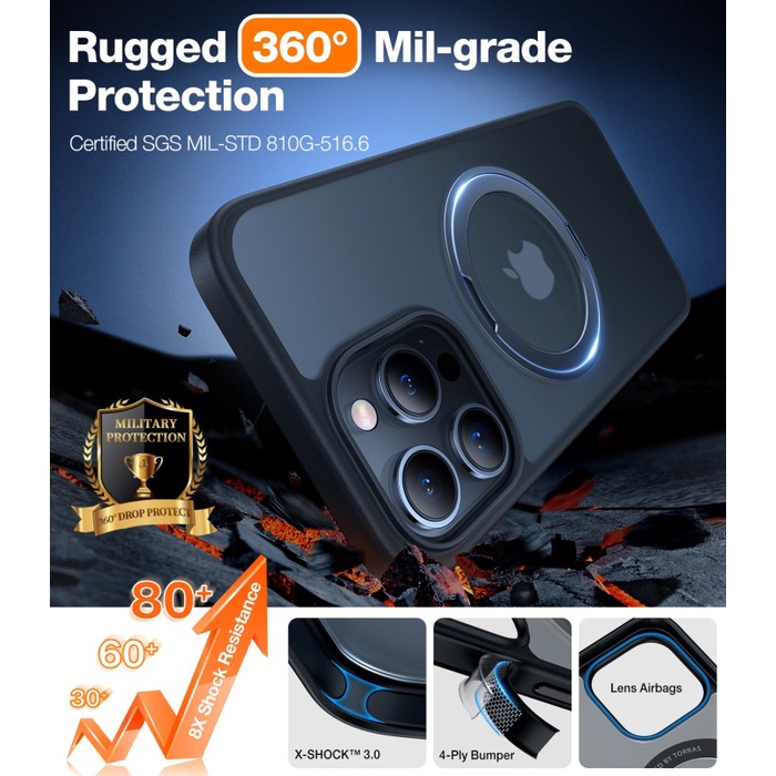 Case iPhone 15 Pro Max / 15 Pro / 15 Plus Torras UPro Ostand Pro 360 Magsafe Stand Casing
