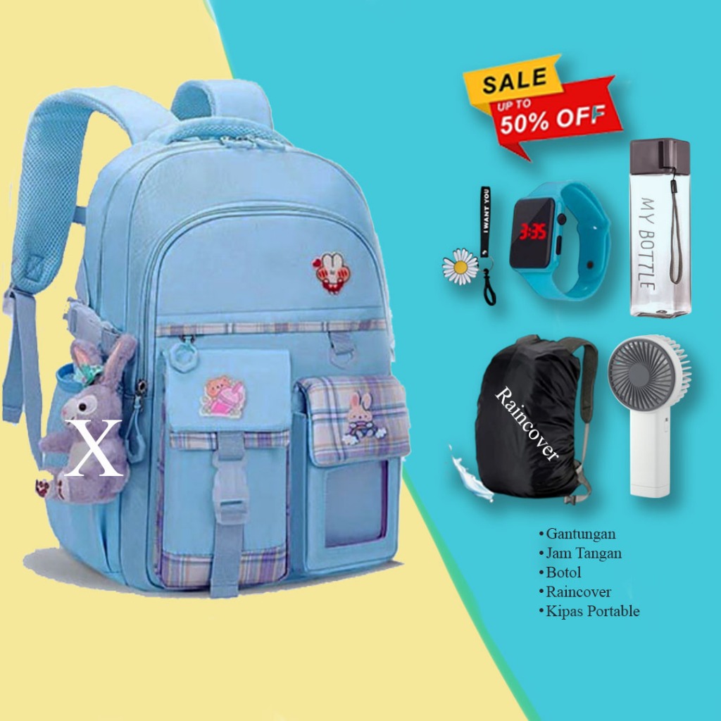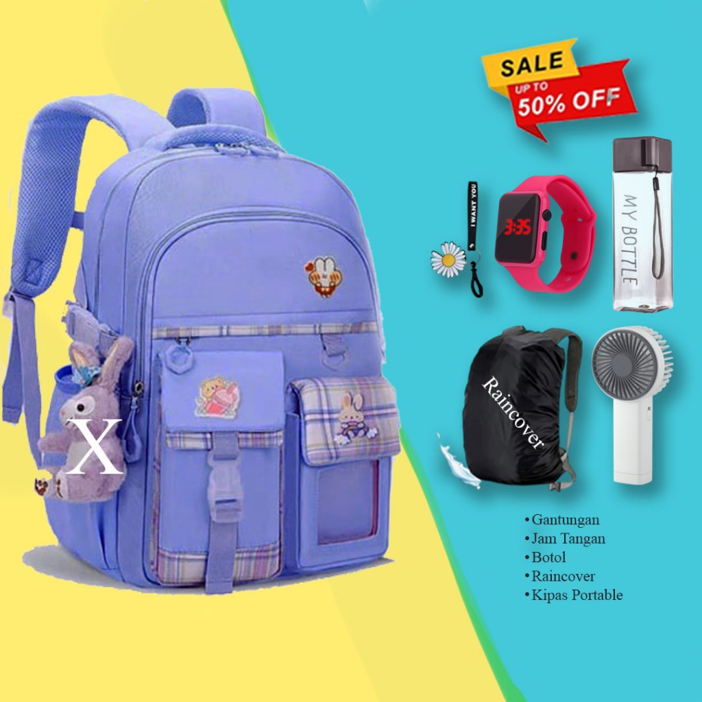 TAS RANSEL SEKOLAH ANAK PEREMPUAN SD SET 6 IN 1 BEST QUALITY