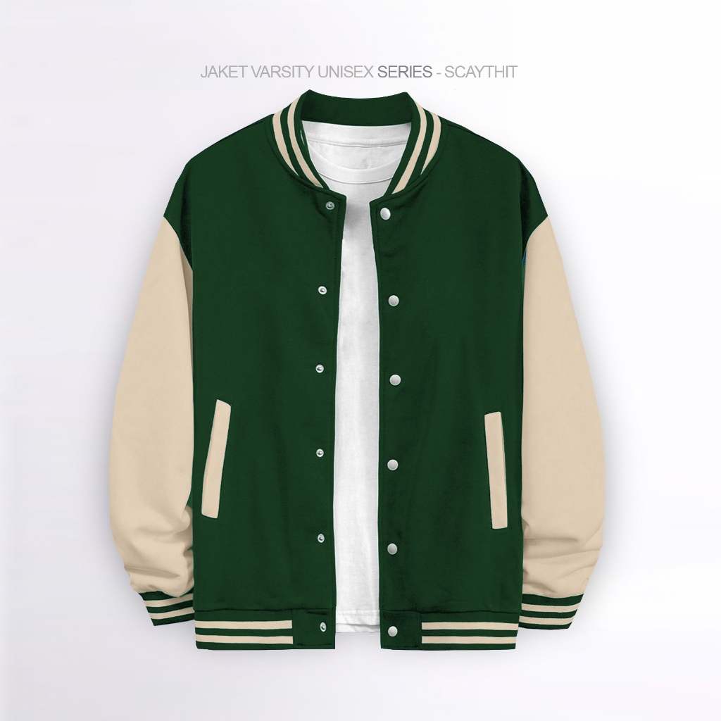 Jaket Varsity Polos Hitam Cream Unisex ( Pria - Wanita ) Remaja Dewasa