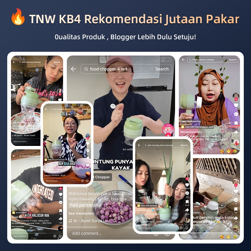 [Star] 【Newest Version】TNW KB4 Food Chopper Protable Mixer Blender Quatre Kapsule 4 In 1 Alat Pemotong Sayuran Handheld