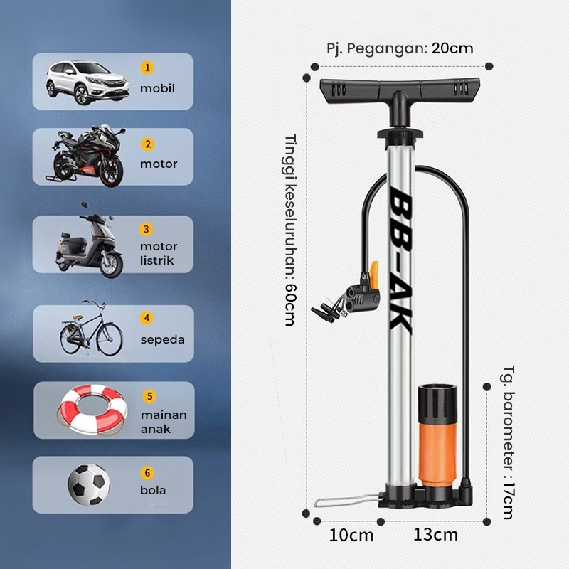 Pompa Kompa Angin Kompa Udara Ban Roda Sepeda Motor Bola Mobil Tabung Besi Multifungsi GRATIS PENTIL