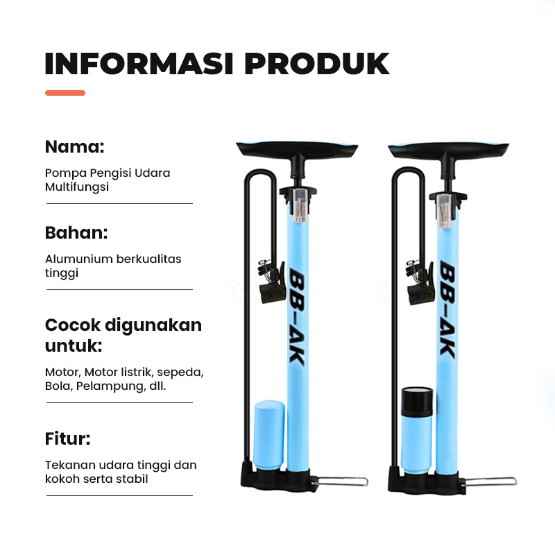 Pompa angin sepeda motor mobil motor listrik bola tahan karat tekanan tinggi mudah diakan multifungsi GRATIS PENTIL