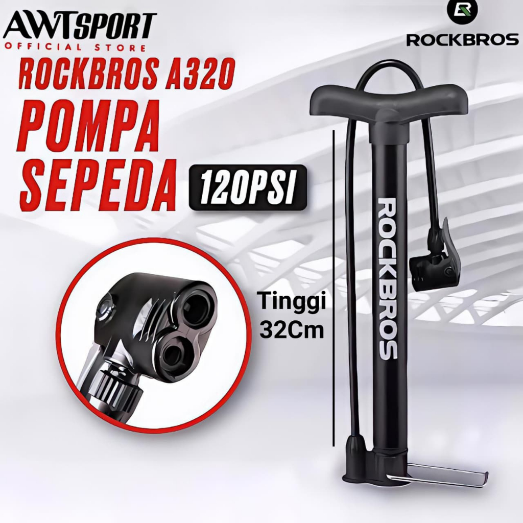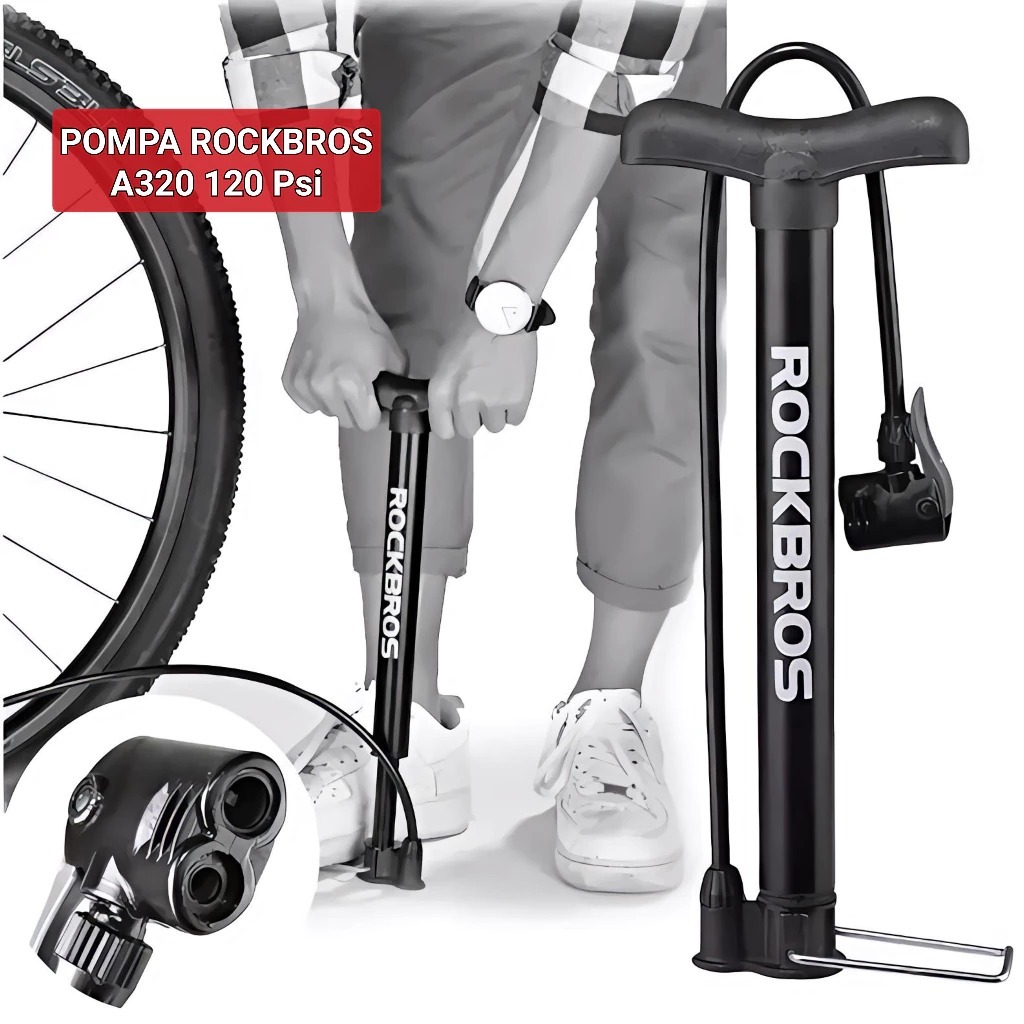 ROCKBROS Pompa Sepeda Motor Ban Psi Pump A320 120PSI Angin Bola Kaki Presta Schrader MTB Roadbike