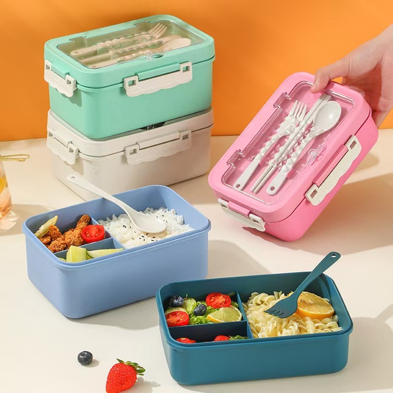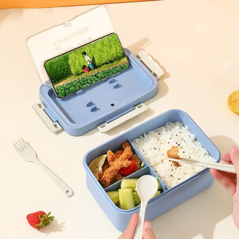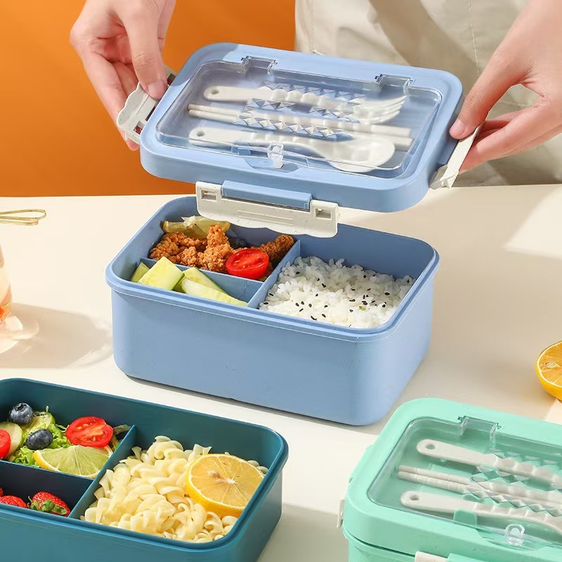 VOOVA LUNCH BOX SET KOTAK BEKAL MAKAN 1000ML 4 IN 1 DENGAN SENDOK MAKAN