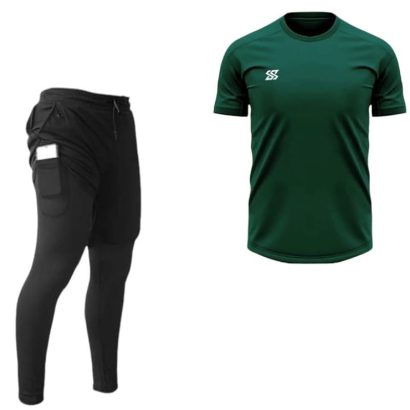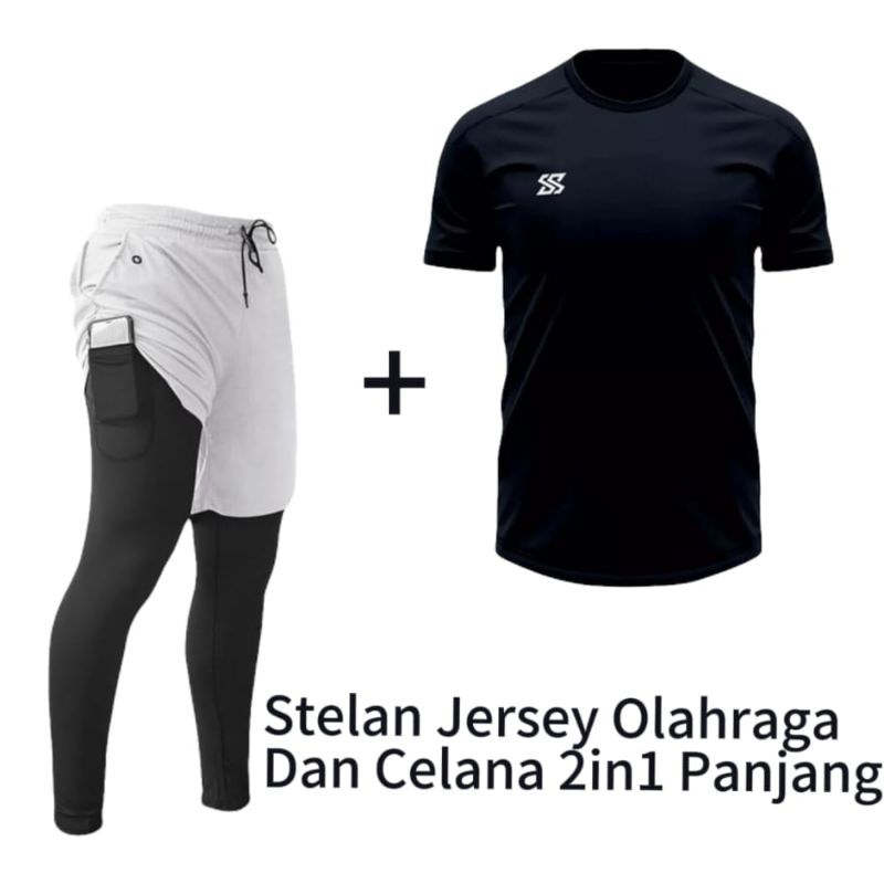 Stelan Baju Jersey Dan Celana Panjang 2in1 Badminton Gym Running Fitnes Voly