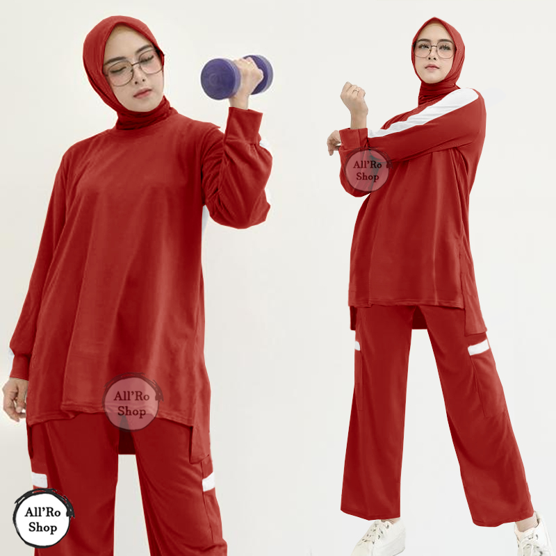 Set Nara - Setelan Olahraga Wanita Muslim Hijab Syari Sopan OneSet Baju dan Celana Senam Model Tunik Lengan dan Celana P
