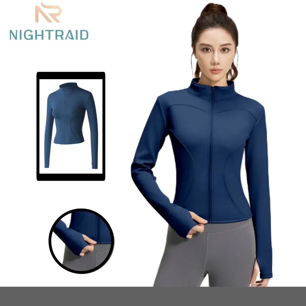 NIGHTRAID - Jaket Olahraga Wanita Baju Lari Gym Running Lengan Panjang Yoga