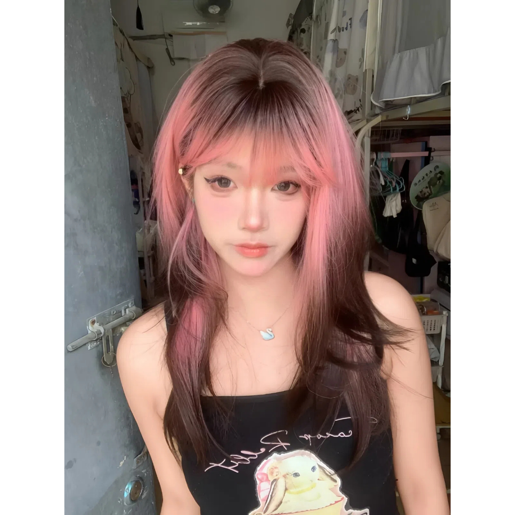 Wig Wanita Full Kepala/Korean Ombre Wig/Wig Daily Natural Wanita/Wig Rambut Panjang curly LAYER WAVE/Wig Premium Rambut