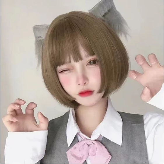 Wig Rambut Pendek Cantik / Rambut Palsu Pendek Gaya Wanita Canti Korea / Rambut Palsu Pendek Wig Pendek Lurus / Cosplay