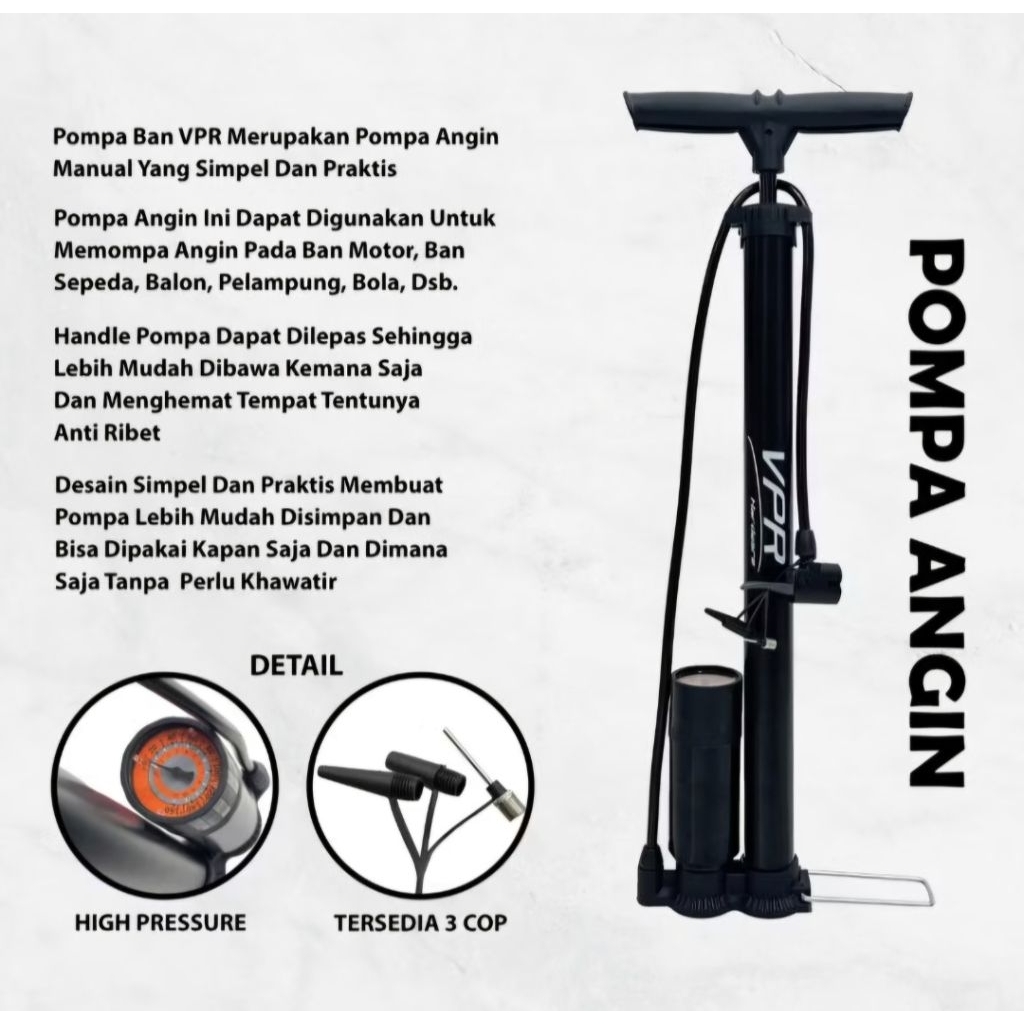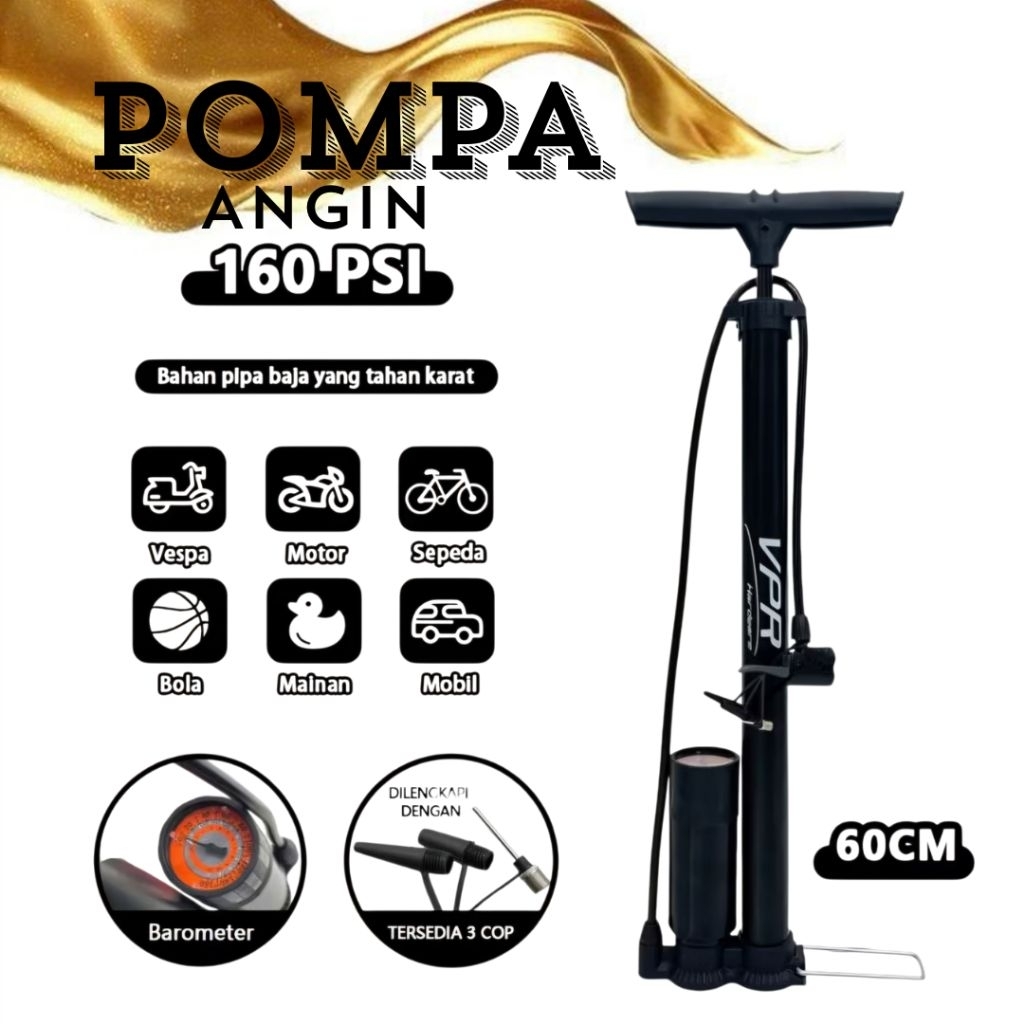 Pompa ban portable high pressure tabung dengan meter - Untuk sepeda, sepeda motor, mobil, bola merk VPR