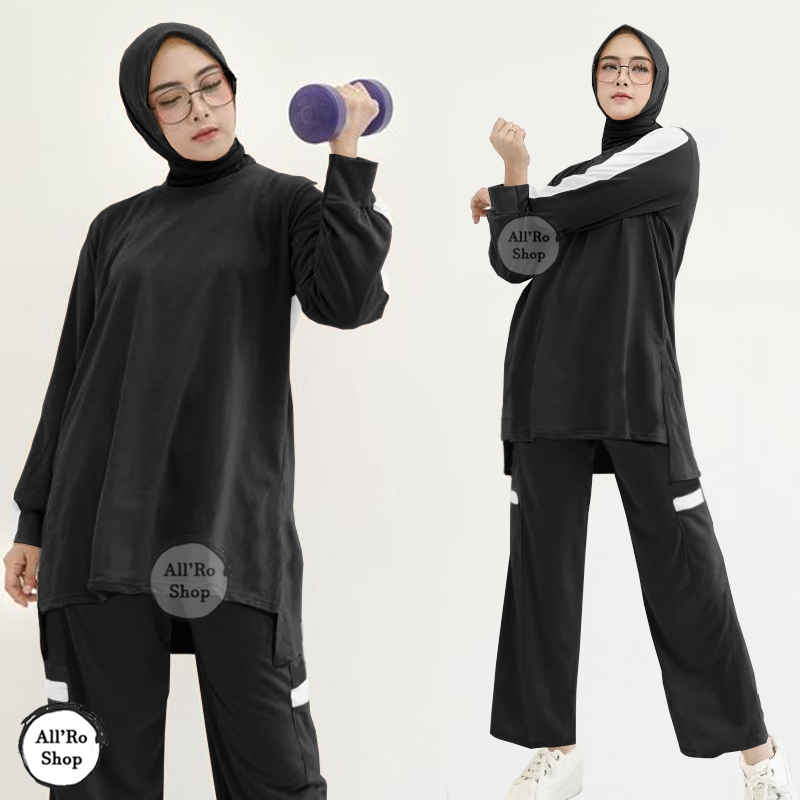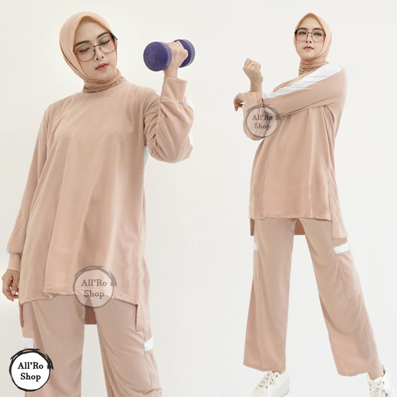 Set Nara - Setelan Olahraga Wanita Muslim Hijab Syari Sopan OneSet Baju dan Celana Senam Model Tunik Lengan dan Celana P