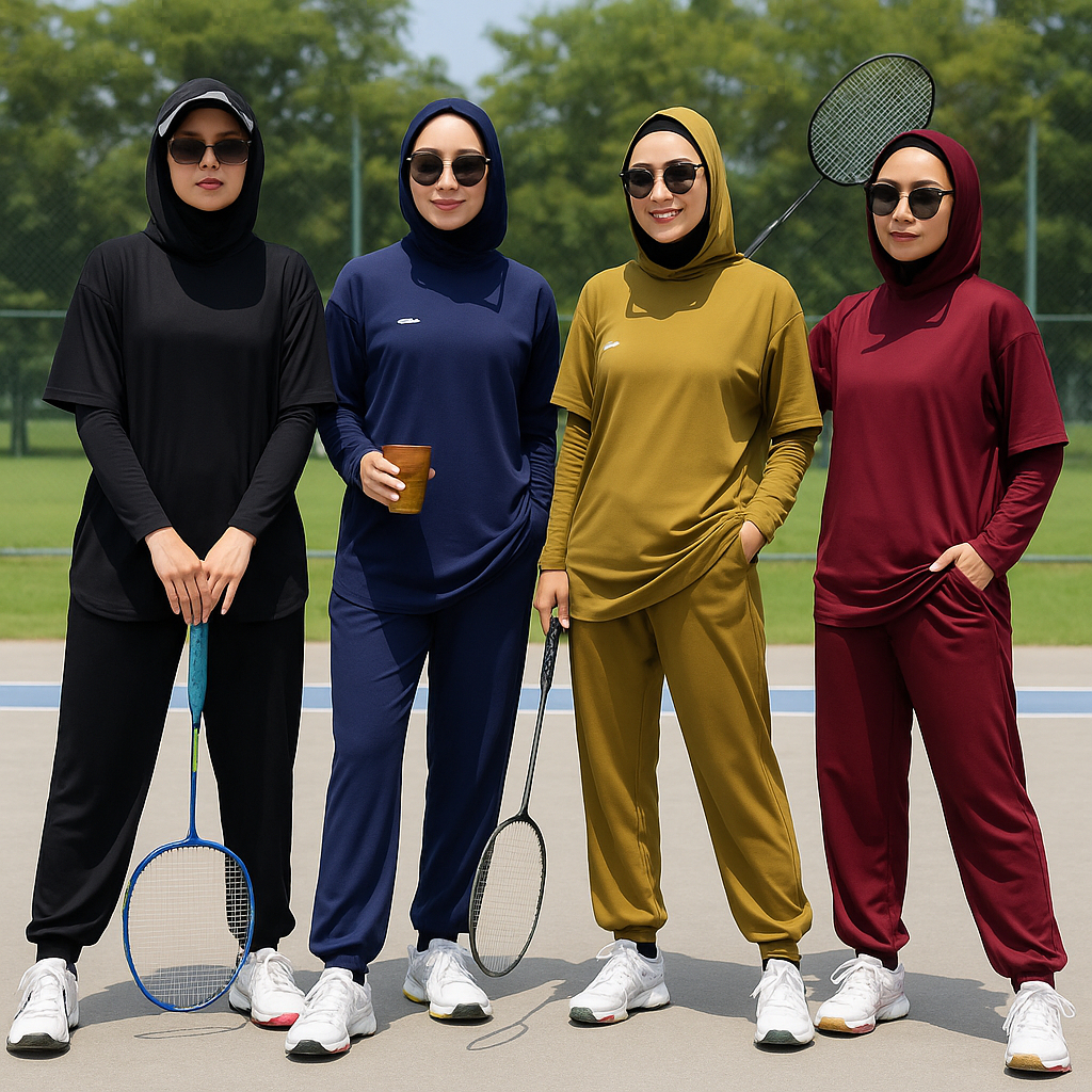 Setelan Olahraga Wanita Muslimah Baju Sport 4in1 Bersepeda Perempuan Jersey Spandex Premium