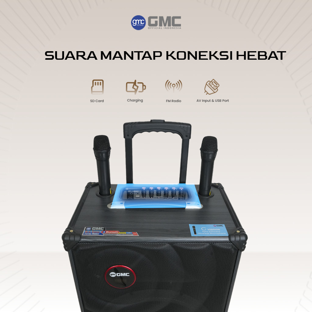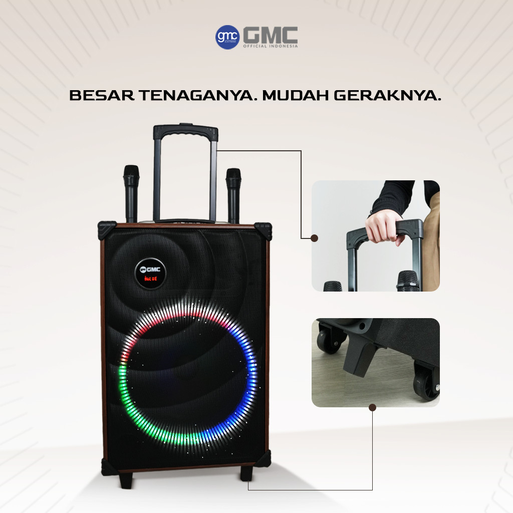 [Star]GMC Speaker 883I – Speaker Karaoke Bluetooth 15” – 160W, 2 Mic Wireless, Lampu LED, USB, AUX, TF