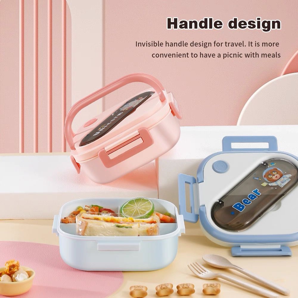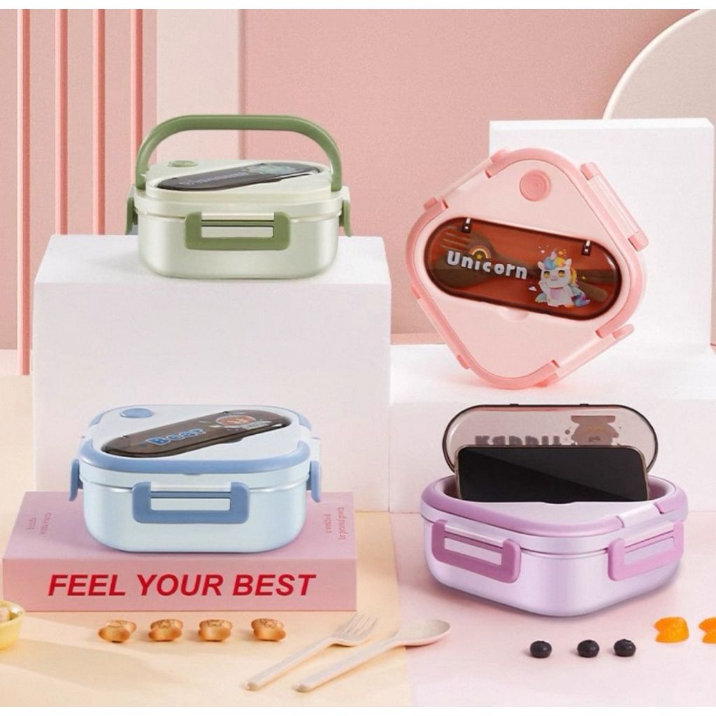 KOTAK BEKAL MAKAN + BOTOL MINUM ANTI TUMPAH BPA FREE 3 SEKAT / LUNCH BOX SET ANAK 1300ML + SENDOK