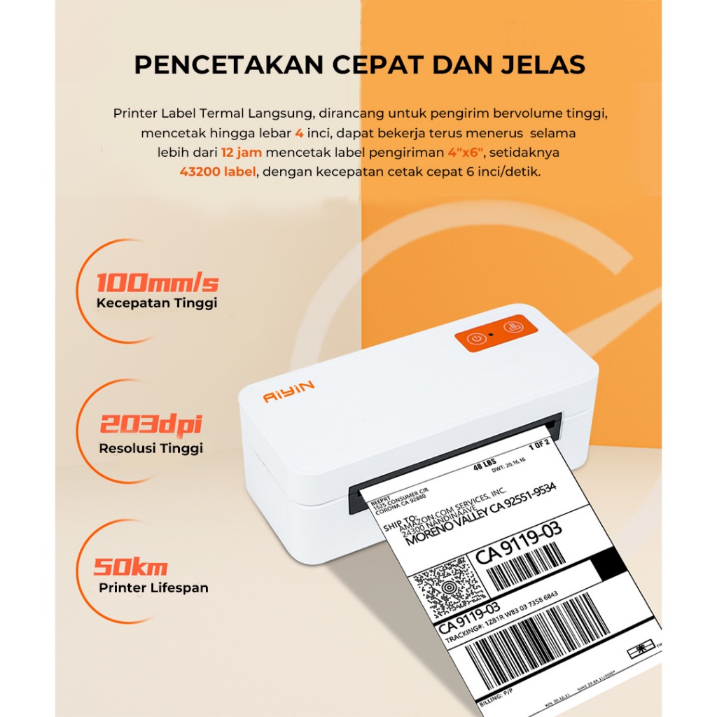 AiYin E40 Pro - Printer Thermal Resi Label Pengiriman Bluetooth Tanpa Tinta