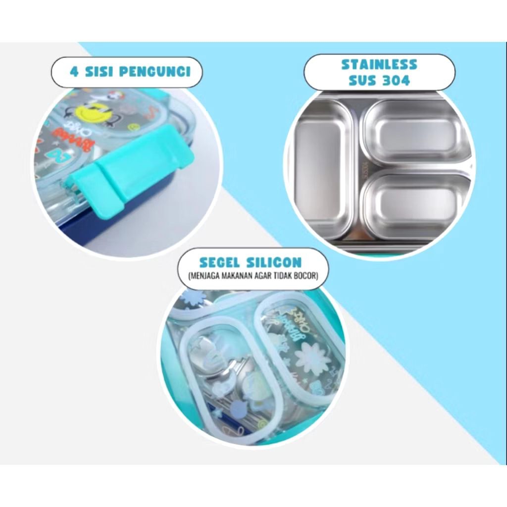 KOTAK BEKAL ANAK SET LUNCHBOX TAS KOTAK MAKAN KUROMI CINNAMOROLL MELODY HELLO KITTY ANAK TK SD REMAJA D3W4SA STAINLES