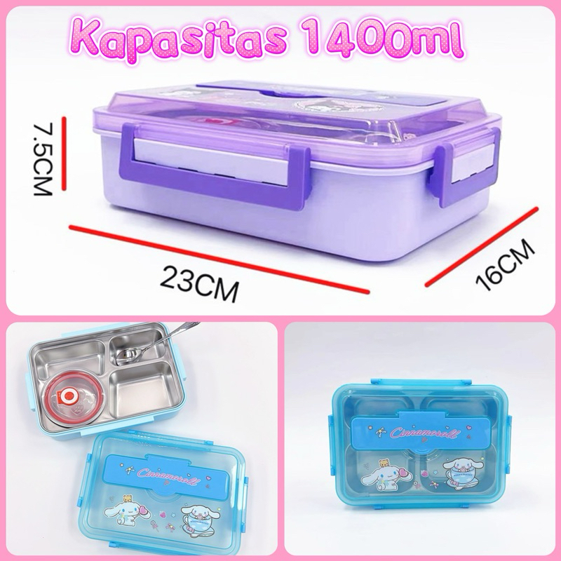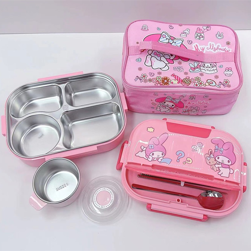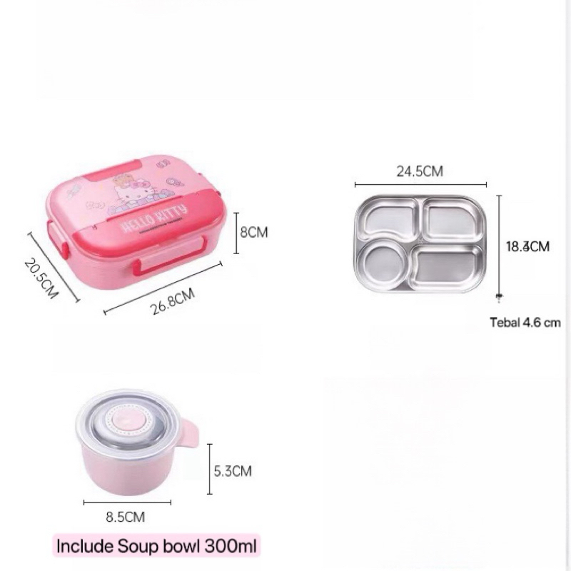 KOTAK MAKAN STAINLEES STEEL INCLUDE TAS KUROMI MELODY CINNAMOROLL | LUNCH BOX SEKAT 4 + SOUP BOWL