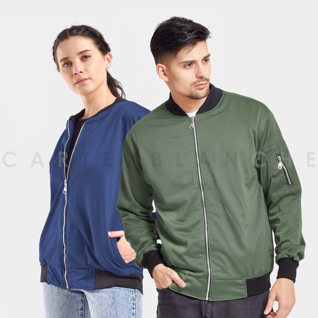 CARTEXBLANCHE Jaket Bomber Polos Pria - Wanita Size M - XXL