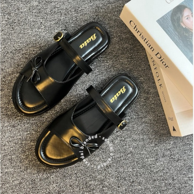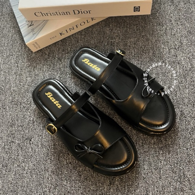 BATA Sandal Wanita Hak tinggi sandal Slop Motif pita Sandal gesper