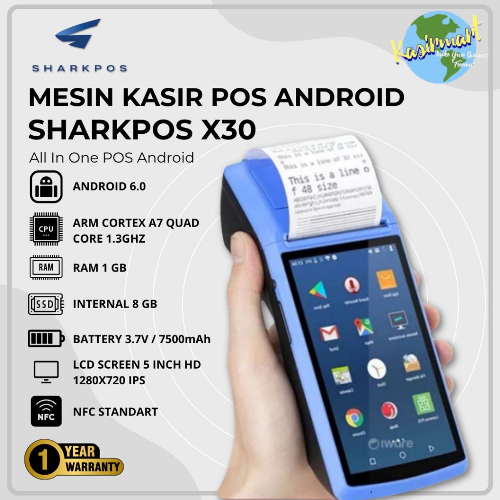 [Star] Mesin Kasir POS Android Sharkpos X30 AP318 AP 318 X30 1GB + 8GB Touchscreen Bluetooth RPP02N