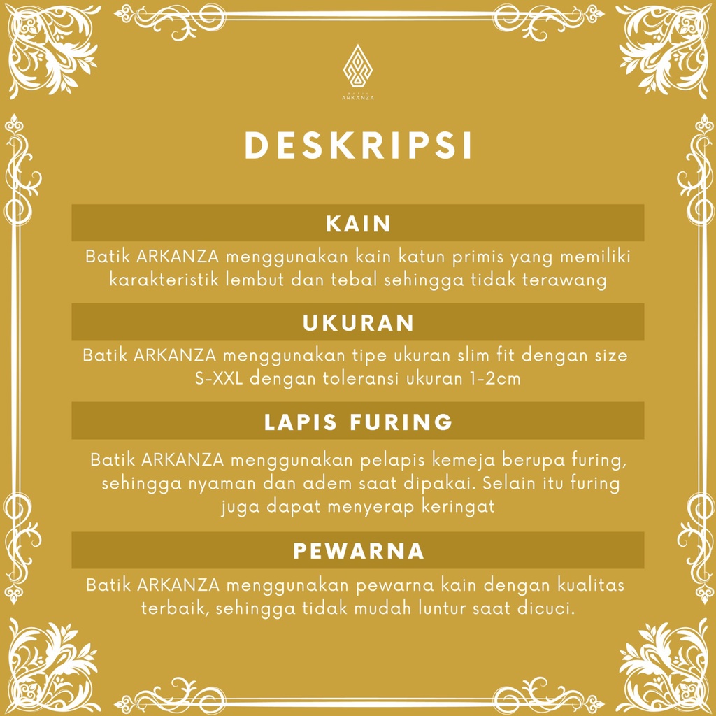 BATIK ARKANZA Motif KERTA HITAM PENDEK Kemeja Baju Batik Premium Pria Cowok Laki Laki Slimfit Full Lapis Furing Tangan Lengan