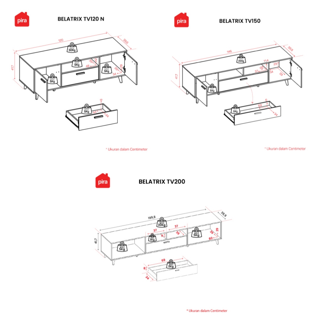 PIRA METROPOLIS BELATRIX TV150 MEJA TV RAK TV