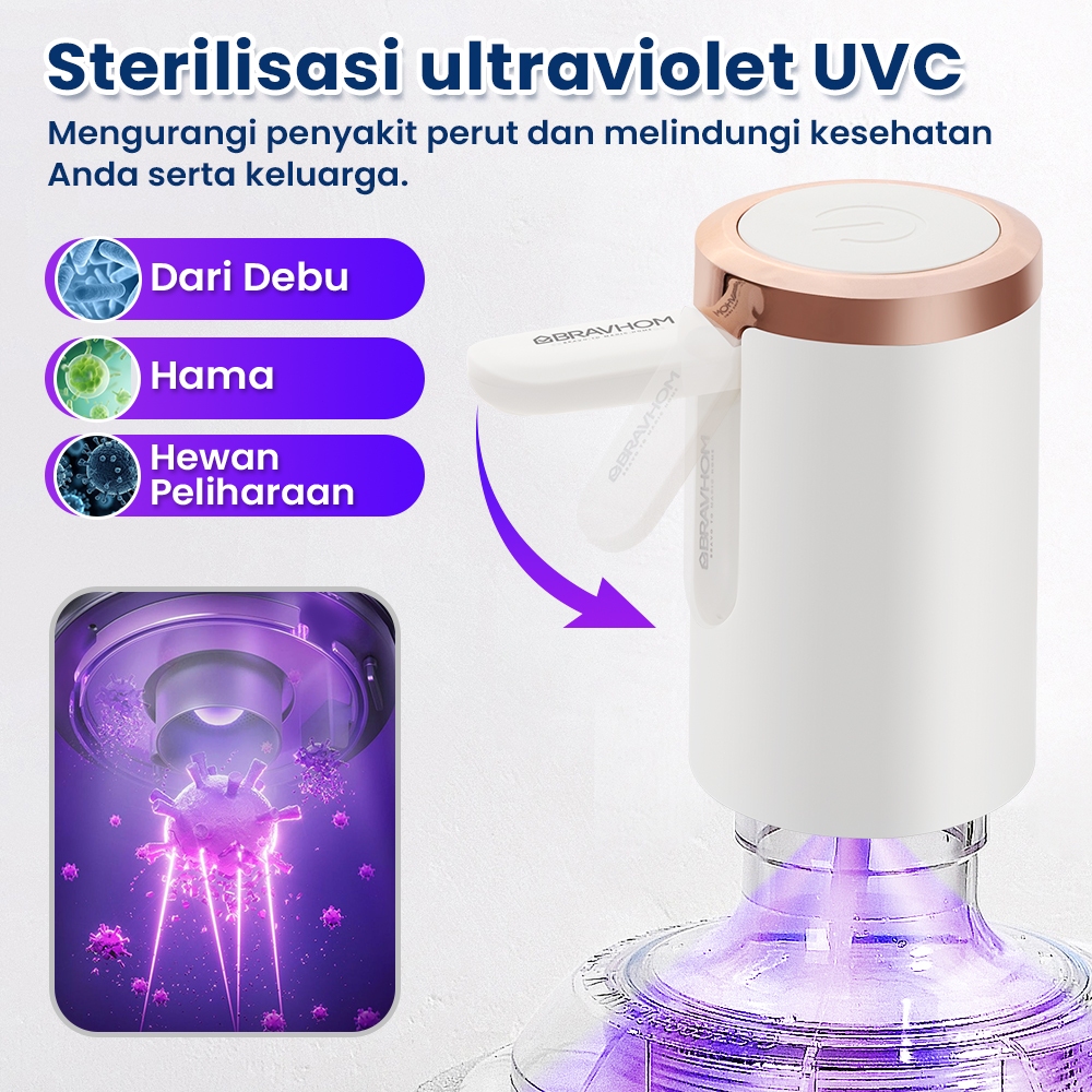 BRAVHOM Pompa Galon Dispenser Galon Bawah Lipat Desinfektan SinarUv 50 Menit Pengisian Cepat BL-WD02