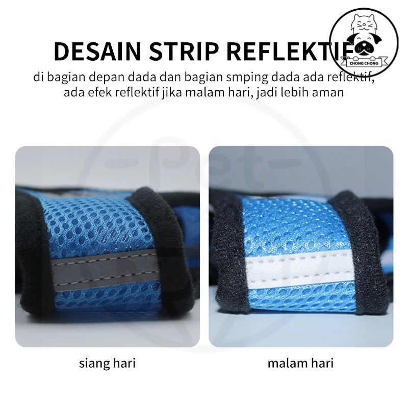 CHONGCHONG - Harness Kucing Tali Rompi Bernapas Hewan Tali Hewan Peliharaan Tali Tuntun Reflektif