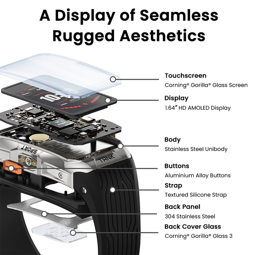 Kospet Tank X2 Ultra Bluetooth Calling Rugged Smartband GPS 1.64" Amoled Fitness Tracker 5ATM 170+ Sports Modes