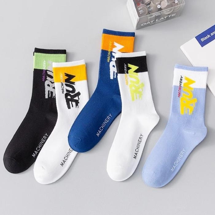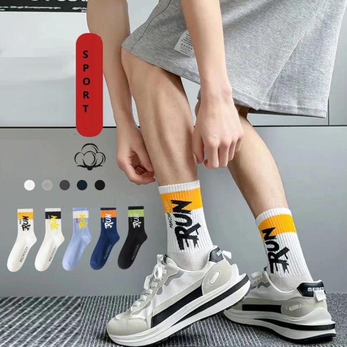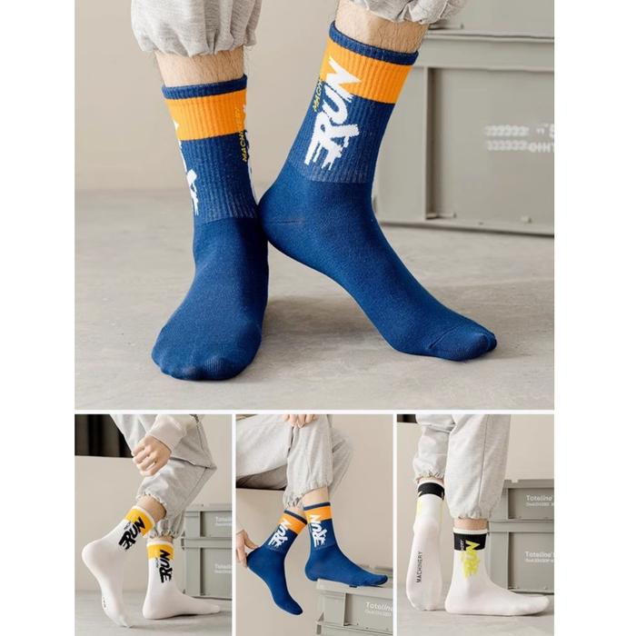 KK300 Kaos Kaki Sport Pria RUN Machinery Lari Olahraga Tebal Big Size Men Socks - black